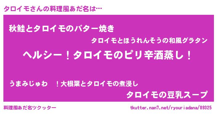 | 男性向けラノベタイトル風あだ名 | 『Re:タロイモから始める異世界生活』 |