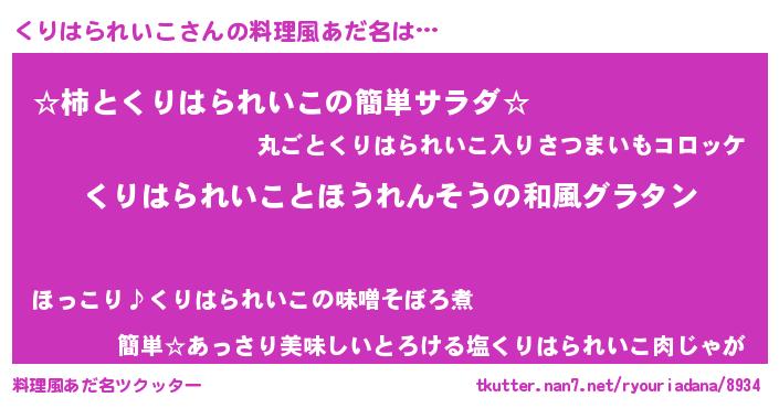 | ヘコむあだ名 | 『くりはられいこ(遠い目)』『くりふぇ~』 |