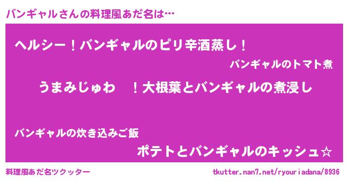 | 女子向けラノベタイトル風あだ名 | 『バンギャルの婚約者』『闇のバンギャル』 |
