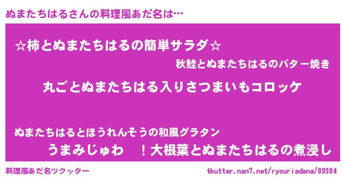 | 女子向けラノベタイトル風あだ名 | 『乙女ゲームの破滅フラグしかない悪役ぬまたちはるに転生してしまった…』 |