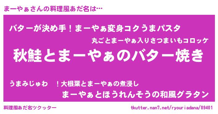 | 胡散臭い通販商品みたいなあだ名 | 『来世でも幸せになれる健康食品…その名も「まーやぁ」』 |
