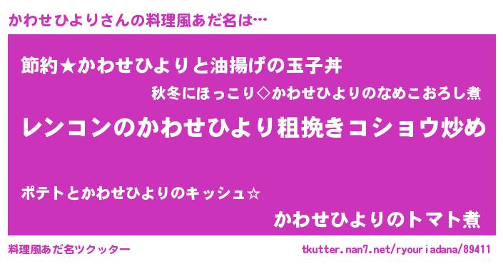| 胡散臭い通販商品みたいなあだ名 | 『ガンによく効くアガリクス…その名も「かわせひより」』 |