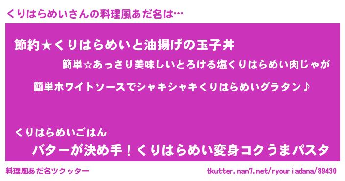 | ヒーロー風カッコイイあだ名 | 『天弓騎士クリ』『スーパークリハラメイ』 |