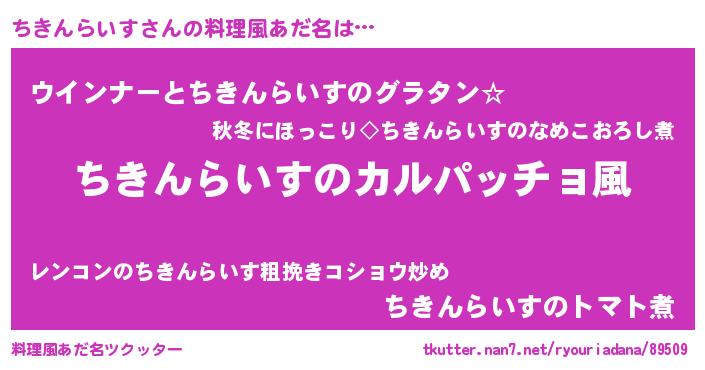 | 意味不明あだ名 | 『住所不定無職ちきんらいす(47歳)』 |