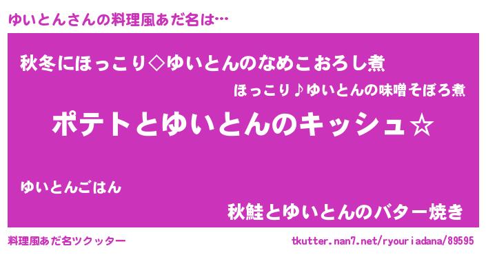 | 男性向けラノベタイトル風あだ名 | 『ゆいとんの嫁は女の子じゃないと思った?』 |