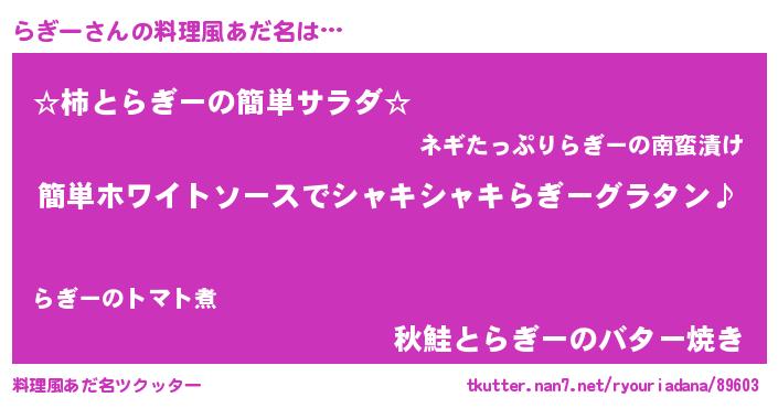 | ヘコむあだ名 | 『らぎっちょ』『らぎー(笑)』『牛乳』 |