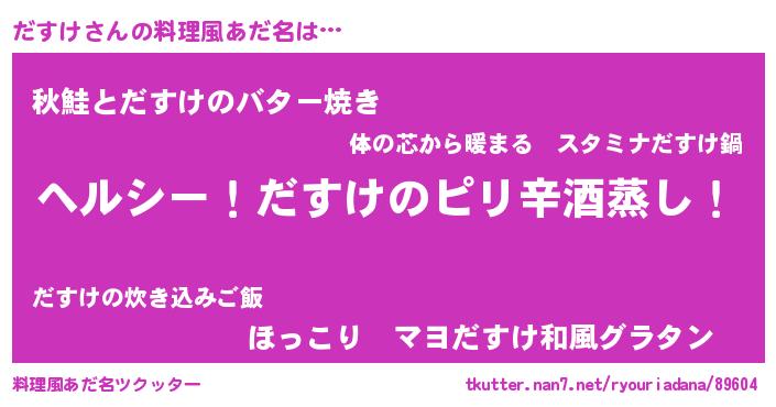 | 意味不明あだ名 | 『自称だすけ』『永久保存だすけ』 |