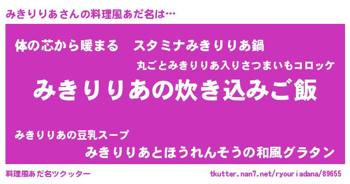 | 意味不明あだ名 | 『みきりりあフォーエバー』 |