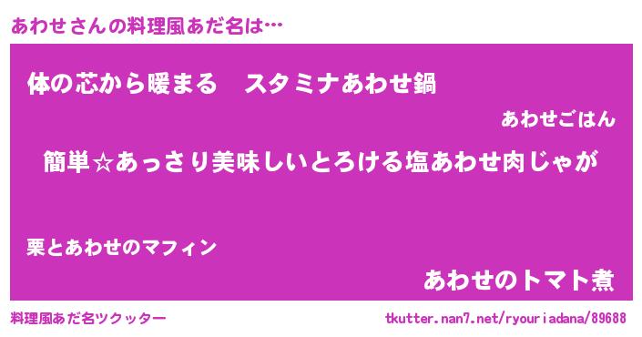 | ヒーロー風カッコイイあだ名 | 『ネオアワセ』『ウルトラあわせマン』 |