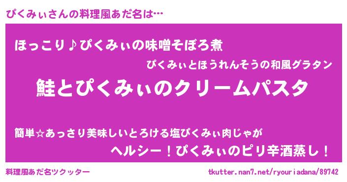 | ヘコむあだ名 | 『ぴくもー』『ぴくみぃ(笑)』 |