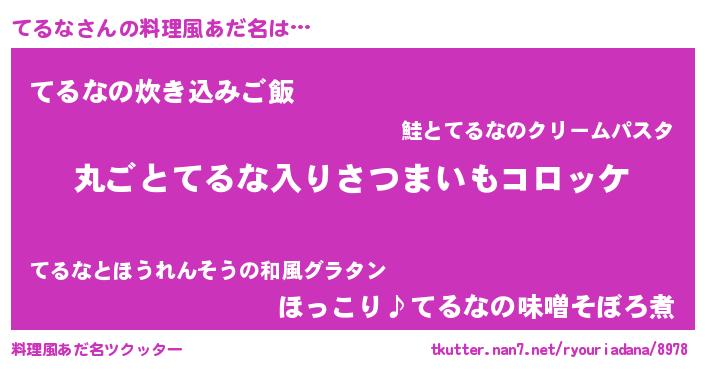 | 男性向けラノベタイトル風あだ名 | 『この素晴らしい世界にてるなを!』 |