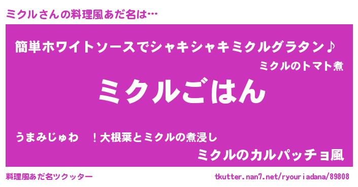 | ポケモン風あだ名 | 『ミクキング』『ヒミクル』 |