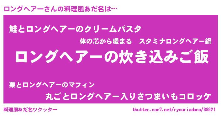 | 男性向けラノベタイトル風あだ名 | 『冴えないロングヘアーの育てかた』 |