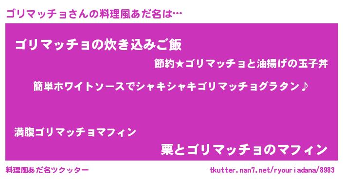 | ピコ太郎風あだ名 | 『ゴリ五郎』『ゴコ次郎』『ピコゴ郎』 |