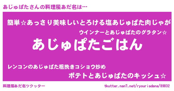 | ヘコむあだ名 | 『あじゅぱた(笑)』『あじっぺ』 |