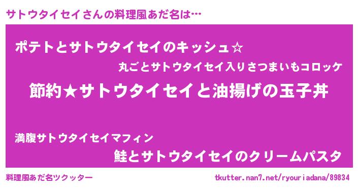 | ポケモン風あだ名 | 『サトチュウ』『ヒサトウタイセイ』 |