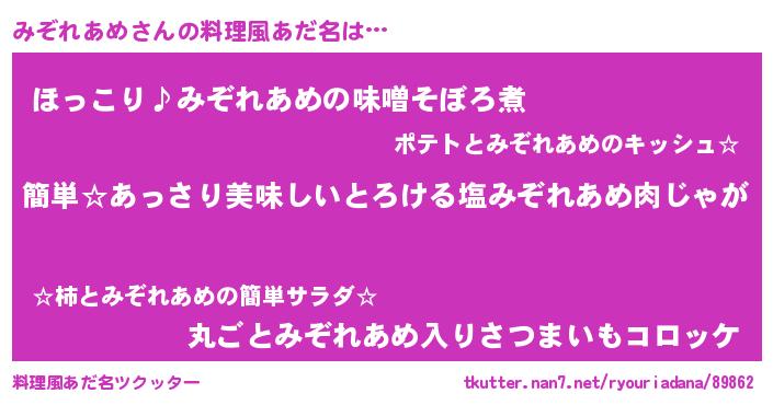 | ヘコむあだ名 | 『みぞれあめ(笑)』『みぞもー』 |
