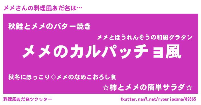 | ポケモン風あだ名 | 『メーメイ』『ゼニメメ』『メメゴンZ』 |