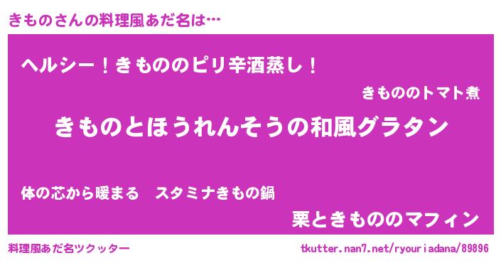 | 女子向けラノベタイトル風あだ名 | 『きものの玉の輿計画!』 |