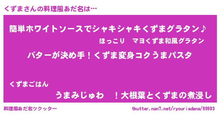 | 欧米人風あだ名 | 『ダニエルくずま』『ウサインくずま』 |