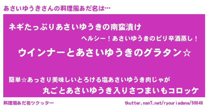 | 恥ずかしいあだ名 | 『あさっちょ』『プリティーあさいゆうき』 |