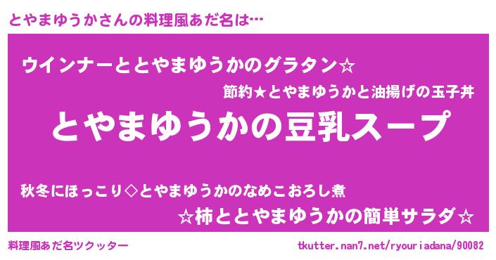 | 胡散臭い通販商品みたいなあだ名 | 『信頼と実績のサプリメント…その名も「とやまゆうか」』 |
