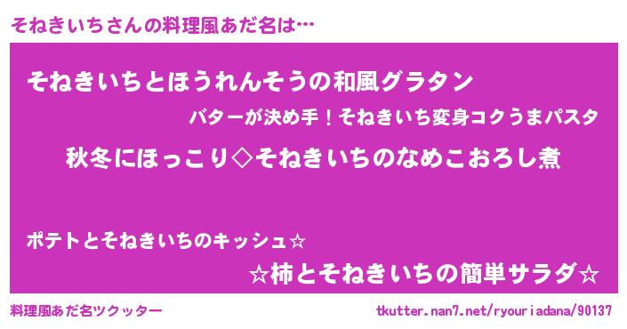 | ヒーロー風カッコイイあだ名 | 『慈愛の使者そねきいち』『天弓騎士ソネ』 |