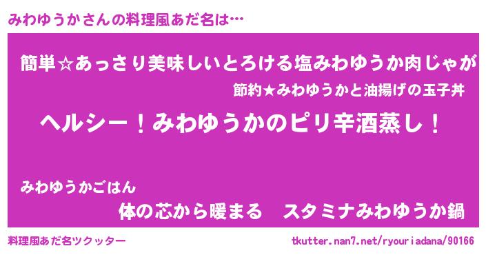 | 意味不明あだ名 | 『自称みわゆうか』『永久保存みわゆうか』 |