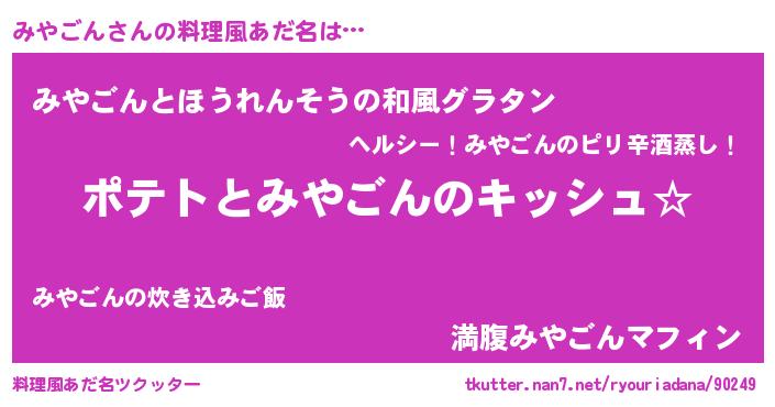 | 女子向けラノベタイトル風あだ名 | 『みやごんの卵を拾いまして』 |