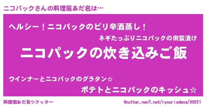 | 胡散臭い通販商品みたいなあだ名 | 『テレビで話題のアガリクス…その名も「ニコパック」』 |