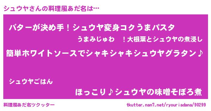 | 女子向けラノベタイトル風あだ名 | 『シュウヤ様がみてる』『シュウヤ恋絵巻』 |
