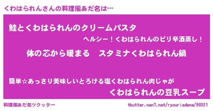 | 意味不明あだ名 | 『くわはられんフォーエバー』 |