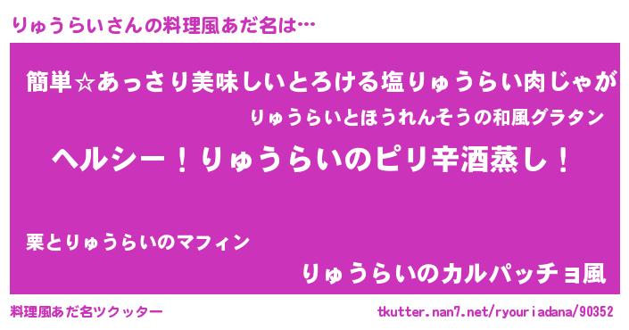 | ヘコむあだ名 | 『りゅうらい(笑)』『りゅにゅー』 |
