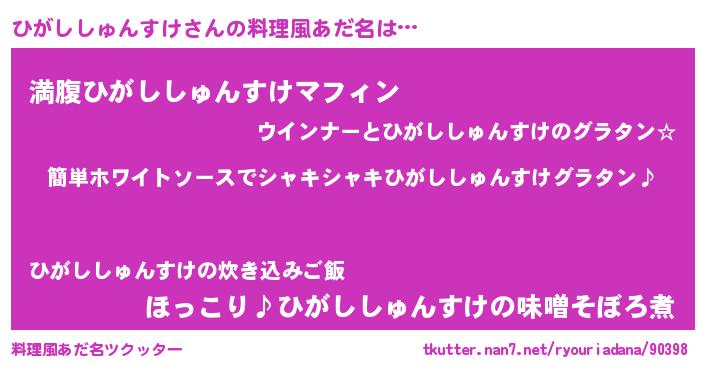 | 男性向けラノベタイトル風あだ名 | 『ひがししゅんすけの嫁は女の子じゃないと思った?』 |