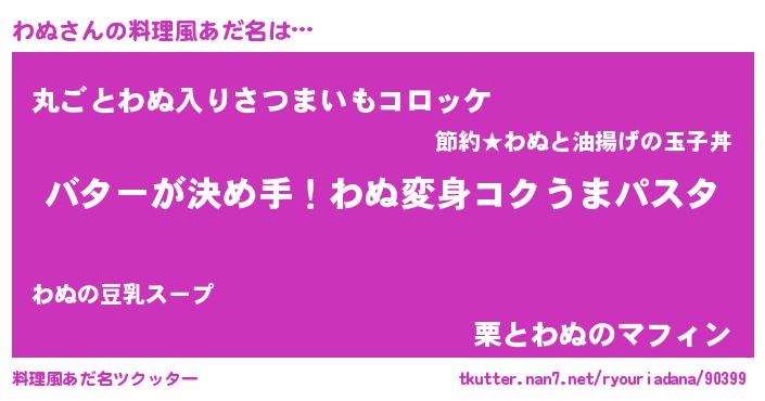 | 男性向けラノベタイトル風あだ名 | 『ノーゲーム・ノーワヌ』『わぬの憂鬱』 |