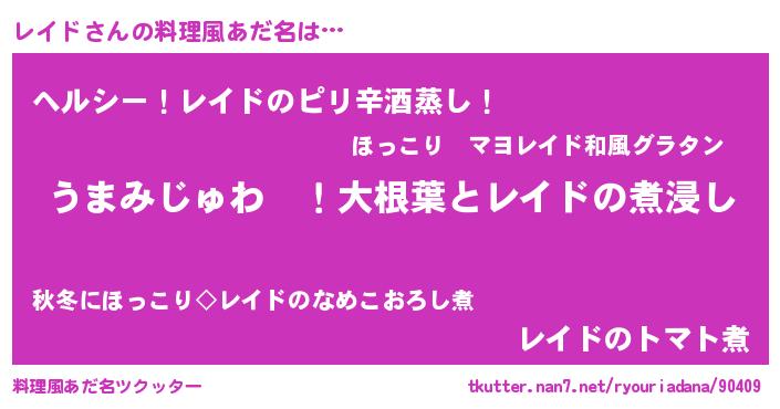 | ポケモン風あだ名 | 『レイドダネ』『レイセウス』 |