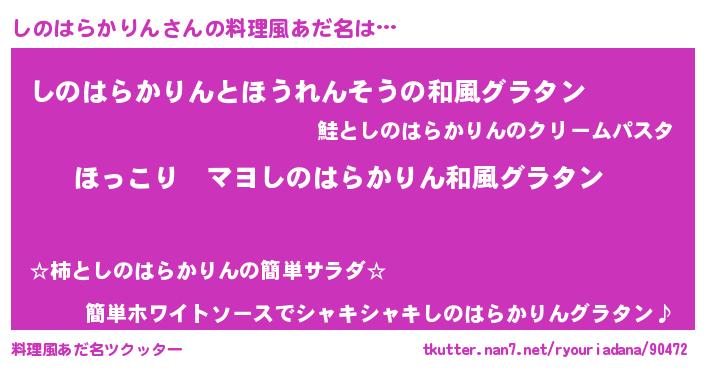 | 意味不明あだ名 | 『住所不定無職しのはらかりん(11歳)』 |