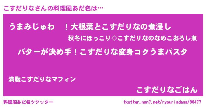 | ヘコむあだ名 | 『なまこ酢』『こすだりな(爆)』 |