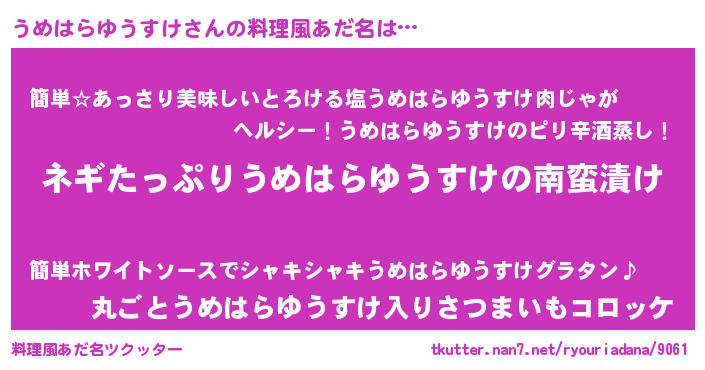 | ファンタジー風あだ名 | 『ウメフェル』『ウメディッシュ』 |