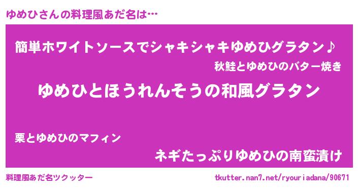 | ポケモン風あだ名 | 『ユメキング』『ヒユメヒ』 |