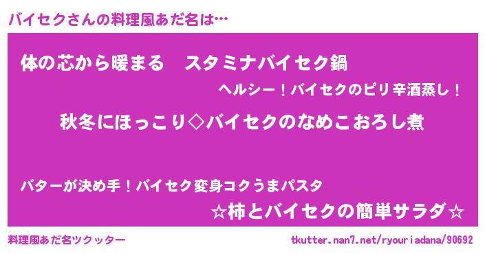 | ヘコむあだ名 | 『なまこ酢』『バイセク(笑)』 |