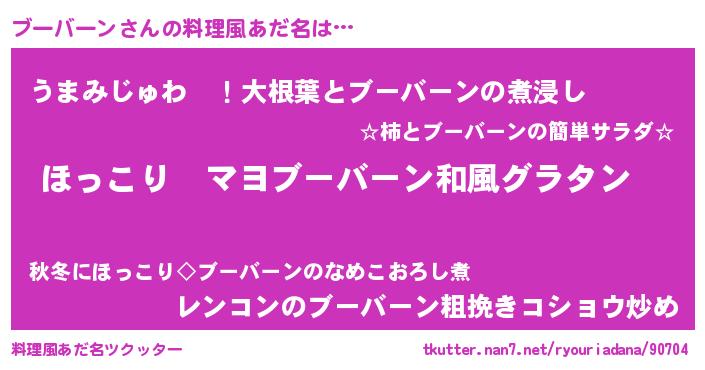 | 女子向けラノベタイトル風あだ名 | 『悪役ブーバーンに転生したようですが、知った事ではありません』 |