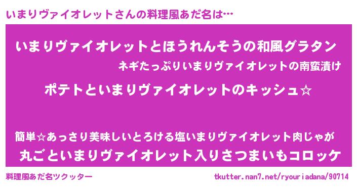 | 男性向けラノベタイトル風あだ名 | 『いまりヴァイオレットの嫁は女の子じゃないと思った?』 |