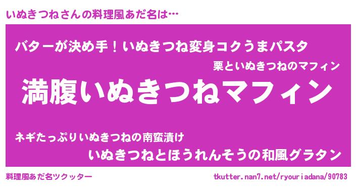 | 女子向けラノベタイトル風あだ名 | 『異世界で失敗しない100のいぬきつね』 |
