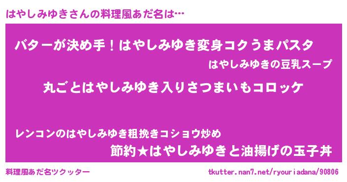 | 意味不明あだ名 | 『住所不定無職はやしみゆき(77歳)』 |
