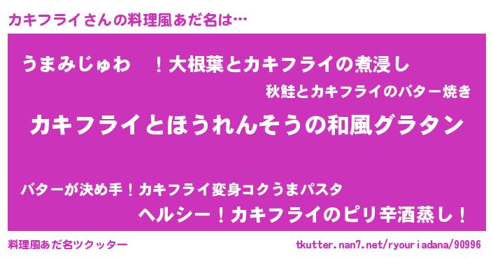 | 男性向けラノベタイトル風あだ名 | 『転生したらカキフライだった件』 |
