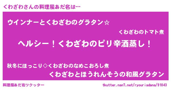 | 男性向けラノベタイトル風あだ名 | 『Re:くわざわから始める異世界生活』 |