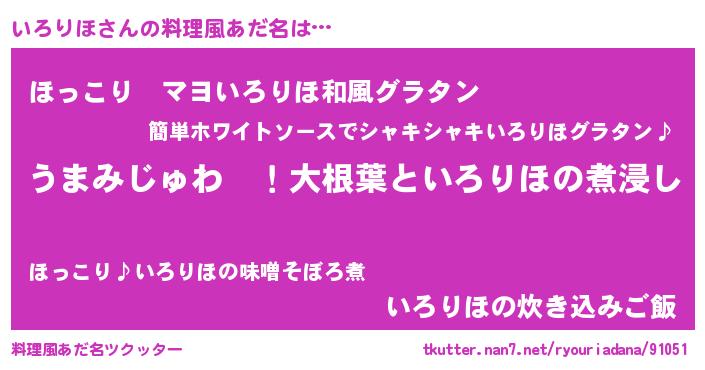 | ヒーロー風カッコイイあだ名 | 『ウルトラいろりほマン』『仮面イロダー』 |