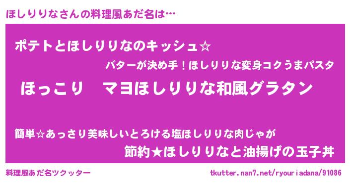 | ポケモン風あだ名 | 『ホーシイ』『ヒホシリリナ』 |