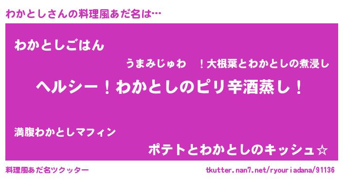 | 男性向けラノベタイトル風あだ名 | 『Re:わかとしから始める異世界生活』 |